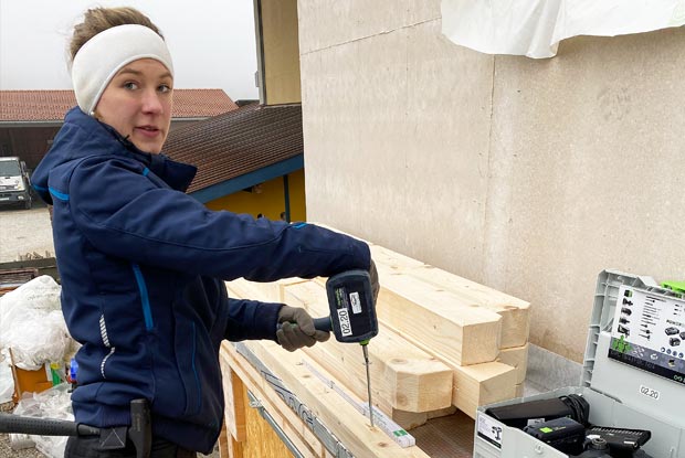 Die angehende Zimmerin Christina Hartl (17) vermisst den Praxisunterricht im Berufsgrundschuljahr. Denn seit Mitte November sitzt sie im Homeoffice. Deshalb übt sie zuhause in Palling (Landkreis Traunstein) die Zimmerer-Praxis: Vor kurzem hat sie mit ihrer Schwester und Vater Ludwig Hartl, selbst Zimmermeister, einen Anbau aus Holz errichtet.