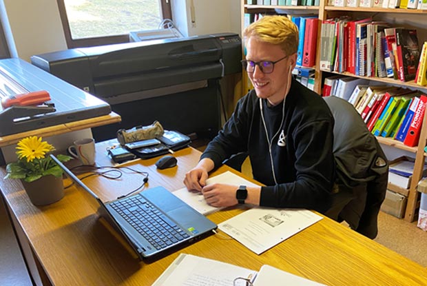 Für den 22-jährigen Gesellen Peter Knauer war klar: Er möchte im Zimmererhandwerk bleiben, aber: „Ich will in meinem Beruf noch weiterkommen.“ Deshalb hat er sich für eine Fortbildung zum „Vorarbeiter Holzbau und Bauen im Bestand“ entschieden, diese fand erstmals im Homeoffice statt.